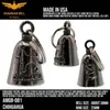 アメリカ製ガーディアンベル社製ガーディアンベルです。 MADE IN USA アメリカ製 交通安全 魔除け 御守り ガーディアンベル アメリカのライダーの間には、事故や、転倒の原因は「道路にひそむ悪魔」によるいたずらだという伝説があります。悪魔は走る者に悪戯やトラブルを運んできます。このベルは美しい音色で悪魔たちを追い払うと言われ愛されています。そんな悪魔のいたずらを防ぎ、御守りとなるのが、守護者のベルという意味を持つガーディアンベル。 日本でも鈴の音(ね)は神道では魔除けの音と言われています。ピューター製の鈴でいい音色でガーディアンベルはデザインも様々あります。 またガーディアンベルにまつわる伝説として、プレゼントとして送られたベルの効果は、自分で手に入れたものの2倍になると言われています。 それゆえに彼氏・彼女・友達・家族へのプレゼントとしての人気も非常に高まっています。 シルバーアクセサリーのようにおしゃれに装着できて素敵な音色を奏でるガーディアンベル。 バイカー以外にも自転車や旅・交通安全のお守りとしてお使いいただけます。 カバン・ランドセル・キーホルダー・ペットの首輪等に付けてお使いください!! ※タイラップ等でバイクのフレームにも簡単に取り付けできます。 アメリカンモデルだけではなく、旧車ファン、レプリカライダーまで、さらにバイクだけでなく、自転車や車にもピッタリな御守りとなっています。 アクセサリーとしても人気で、アイディア次第で車体だけでなく、キーホルダーや鞄など、どこにでも付けておしゃれに楽しめます。