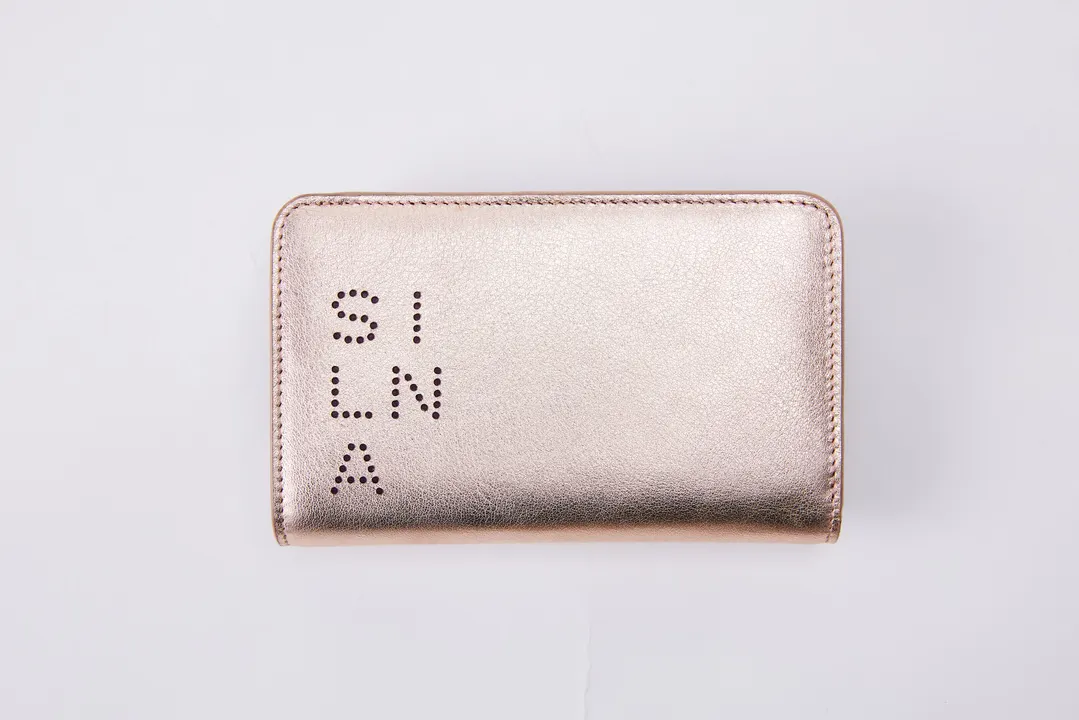 SILNAロゴ入りパンチング2つ折り財布。 人気商品で完売の為、追加生産いたしました! 商品番号:SZ3515 カラー展開:BLACK, GOLD, SILVER サイズ詳細:W14×H9×D3.5 スペック:カードポケット×14/札紙幣ポケット×1/ ファスナーコインポケット×1 財布専用箱入り 素材:牛革 生産国:インド お手入れ&保管方法 お手入れに関する注意事項を記載した下げ札を商品に付けています。 水濡れ注意&丸洗い不可です。 保管する場合は、異素材との密着は避け風通しの良い場所で保管してください。 ご購入・返品につきまして お客様都合による返品・交換は、ご遠慮いただいております。 ご理解の程、よろしくお願い申し上げます。