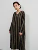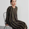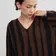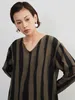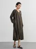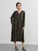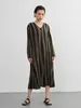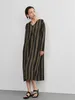 KNXO406-太ストライプバイカラー・Vネック長袖ワンピース・一枚でシンプルクールに FREE/OLIVE
