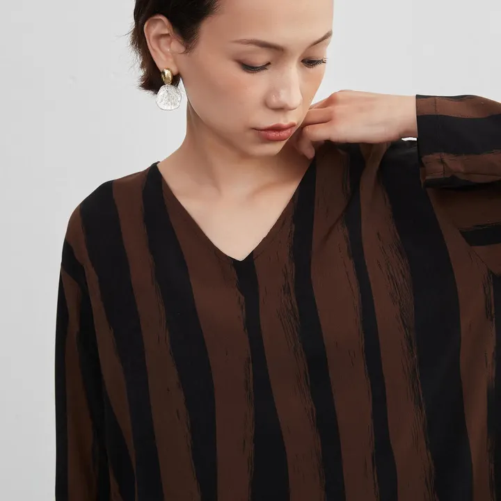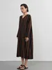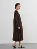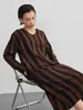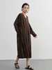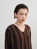 KNXO406-太ストライプバイカラー・Vネック長袖ワンピース・一枚でシンプルクールに FREE/BROWN
