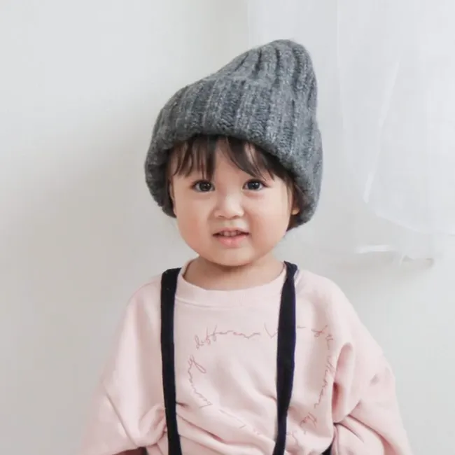 キッズ ニット帽 帽子 無地 ライトベージュ ダークグレー ライトグレー パープル イエロー ブラウン ブラック 秋 冬 SNK021 ダークグレー