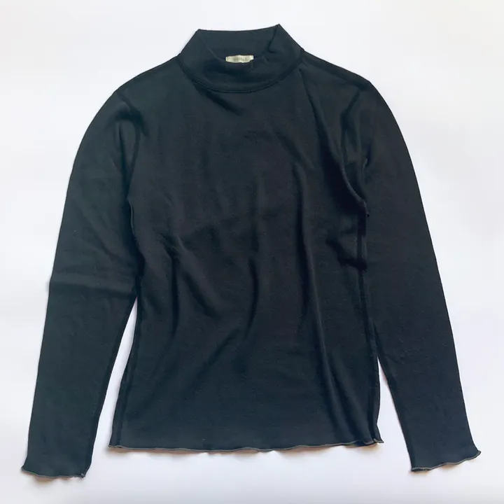 オーガニックコットン100%のハイネックの長袖のTシャツです。 非常によく伸びる、しっとりとした肌ざわりの2枚の柔らかな生地が、無数の接結点によって1枚に編み上げられた二重構造になっています。生地と生地の間にたっぷりと空気を含むため、体温がとどまり、やさしく保温します。 吸湿性に優れるため、秋から春まで長い期間にわたってお召しいただけます。 縫い目には、フラットシーマーという特別なミシンを使用しています。生地と生地のはぎの縫い代が一般的な縫製で仕上げたものよりも薄く、肌へのあたりも滑らかです。 袖と裾はグレーの配色ステッチ。ニットやカーディガンのインナーとしてレイヤードスタイルを楽しんだり、LEGGINGS"CORETTA"とセットアップでルームウェアとしても。 専用パッケージに入れてお届けいたします。 <生産背景> こちらの商品にはバーチャルトラベルチケットが同封されています。 チケットについているQRコードをスマートフォンで読み込むと、生地が出来上がるまでの全行程を見ることができます。 詳しい生産背景については下記URLからご覧いただけます。 (https://www.panoco.co.jp/trace/cms/app/webroot/frame/?code=D05XXXXXXXXX-XX-02-XX-01-XX-02-XX-XX)