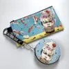 フラットポーチと同じく「カラフルポップ」をテーマにデザインされた、個性あふれるポーチ。 コインケースはもちろん、イヤホンジャックやアクセサリーや薬入れなど、小さいものを入れて持ち歩きたい時にとても便利です。 黒のストラップ付きで、ブランドコンセプトである 「DIVE INTO THE STRANGE FANTASY(奇妙なファンタジーへ)」というタイポグラフィが入っています。 ワンポイントのキーホルダーにしてカバンにつけても。 意識したのは、フラットポーチとの「組み合わせ」。 フラットポーチについているカラビナ部分と、ラウンドポーチに付いているストラップが、セットで繋がる作りにしています。 同じデザインのものを組み合わせても可愛いですし、別のものを組み合わせてごちゃごちゃつけても個性が出ます。 紐を通してポシェットにも。 PUレザーを使用しているため、丈夫で傷つきにくい素材です。