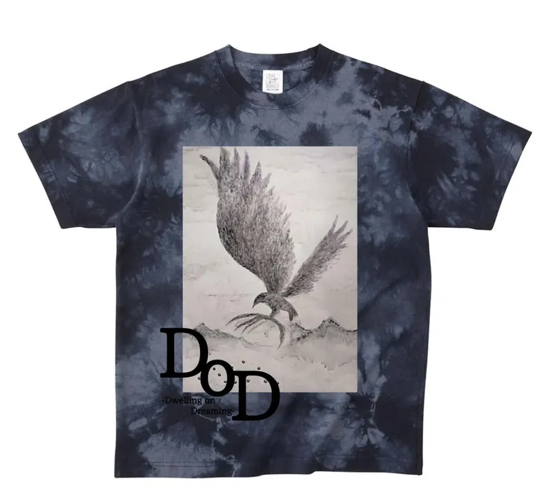 眠っている時にみた夢のワンシーンを描いています。 こちらの絵の表題は「実をつかみ、空を飛ぶ」です。 大きな翼と、大きな足を持った鳥が実を掴み、空を飛ぶ様子を描きました。 サイズはMサイズのワンサイズのみです。