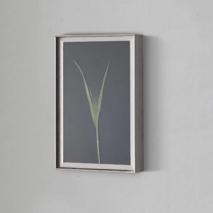 「RIM」と名付けられたこの製品はその名の通り、額の周囲に縁(rim)がついたシンプルな額縁です。 厚さ1mm、高さ5mmの縁が周囲をまわり、これによって額縁に小さな奥行きが生まれます。 この縁と奥行がつくことで、エッジに走る輝きと立体感が静かに作品を演出します。 縁の内側にアクリルを被せることや、アクリルBOXを入れて立体的な作品を飾ることもできます。 また平置きにしてアクリルボックスを使った展示も可能です。 「マットシルバー」の表面はショットブラストのマットコーティングを施し、アルミの素材感と高級感を合わせ持っております。 2021年グッドデザイン賞受賞。
