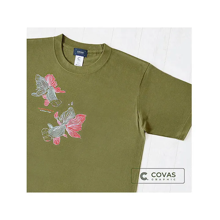 ユニセックス・半袖プリントTシャツ "金魚風情" カーキ デザインTシャツ 501339-47 size: XL