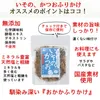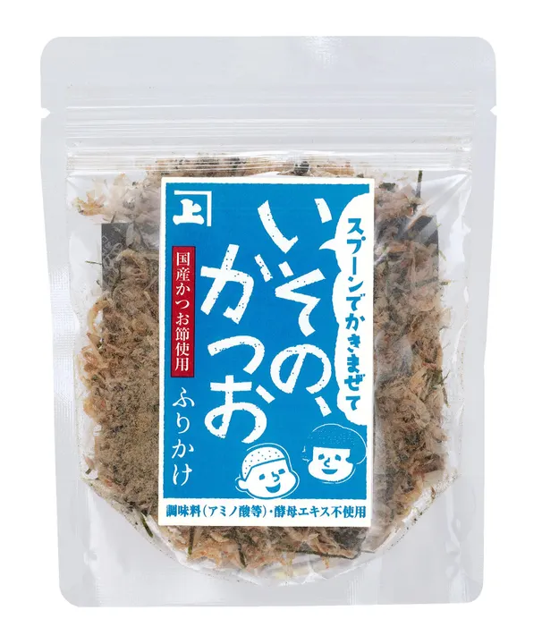 ーーー 【送料に関して】 商品合計が「60袋以上」もしくは「2ケース以上」で送料は弊社負担となります。(北海道・沖縄は除く) ーーー 鹿児島県産の風味豊かなかつお節をベースとして馴染みあるおかか風味に仕上げた無添加ふりかけ。 やさしい味が特徴です。 ご飯、お豆腐、サラダなどにふりかけて。 スプーン付き 【栄養成分(100g当り)】 熱 量:290kcal タンパク質:54.5g 脂 質:3.2g 炭 水 化 物:14.9g 食塩相当量:15.3g ●いつも食卓にあると嬉しい無添加ごはんのおとも カネジョウのふりかけは完全無添加 化学調味料をはじめ、エキスやタンパク分解物も不使用 素材の風味を味わえる無添加の薄味 カルシウムやミネラルたっぷりの原料を使用 子供や離乳食、食育にもオススメ 【塩ってとっても大事!天然塩を使っています】 「無添加で作っている」というメーカーさんは多くいらっしゃいます。 無添加といってエキスを使うのは論外ですが(これはもう違法なんですけどね)、味付けに使っているものはどんなものを使っているの?って気になる方もいらっしゃるのではないでしょうか。 弊社で加工しているワカメの味付けにはすべて天然塩を使っています。 加工食品に多く使われる精製塩ではなく天然を使用しているため自然のミネラル分と旨味も豊富に含まれています。 精製塩とは、塩化ナトリウム純度99%以上の過精製塩のことです。 これはイオン膜透過法という方法で分子レベルでミネラルなどがすべて除去されています。 その中には、ナトリウムの排出に必要なカリウムなども多く含まれます。 このような精製塩ばかりを摂取していると、ナトリウムの過剰摂取になってしまいます。 そのためカネジョウでは毎日安心して家族の皆様に食べていただけるよう、弊社の加工においてはすべて天然塩を使用しています。
