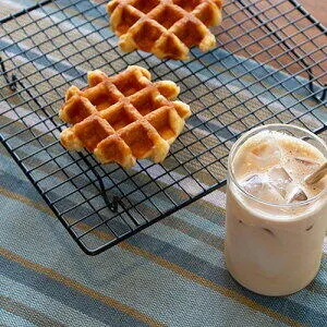 最後の仕上げはこれにおまかせ。味わいも見た目もおいしい出来上がりに♪ Red Cabinオリジナルブランド『the reset(リセット)』から、焼き立てのお菓子が映えるブラックのケーキクーラーが入荷しました。 スチール製だから、木製のものよりも早く冷ますことができます。 さらにフッ素樹脂でコーティングされているので、こびりつくこともなくさっと洗えてお手入れも楽チン。 網目の大きさは、約1cm四方のグリッドデザイン。不安定なカップケーキなんかもきれいに並べられます。 しっかりと安定した脚は高すぎず、場所を取らないから隙間にすっと収納可能。 ワッフルなどの少し大きめのお菓子でも4人分は余裕で収まります。乗り切らないからといって重ねてしまうとせっかくのサックリ感も半減してしまいますから、たくさん載せられる四角いデザインは重宝しますね。 ブラックのグリッド模様は、焼き立てのお菓子を見た目にもより香ばしく、美味しく引き立ててくれます。このまま食卓に運んで、アツアツをみんなでいただくのも楽しいですね。 【サイズ】幅 26 × 奥行き 23 × 高さ 3 cm 【素材】スチール(フッ素樹脂加工) 【重量】約211g 【網目の大きさ】約1cm×1cm 【原産国】中国
