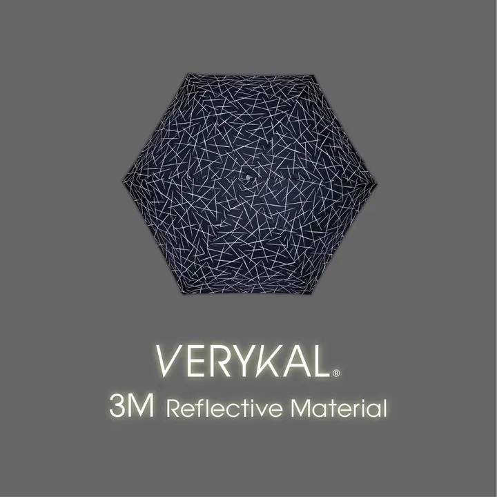 雨の夜も安心!VERYKAL® 3M Reflective Material ・視認性の高い反射素材: 3M社製の再帰反射材を生地に直接プリントすることで、夜間でも高い視認性を確保。 ・ワンタッチ自動開閉: ボタン一つで傘の開閉が可能な自動開閉式で、忙しい時や荷物の多い時でも便利です。 ・軽くて丈夫な生地: 30デニールの軽量生地を使用しながら、強度を保つことで、軽さと耐久性を両立しています。 ・強力な撥水: Easy-Dry加工により、高い撥水効果が持続し、雨水を簡単に弾きます。 ・安全・安心の品質: エコテックス®スタンダード100認証を取得し、人と環境に優しい素材を使用しています。