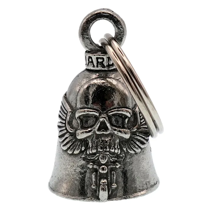 アメリカ製ガーディアンベル社製ガーディアンベルです。 MADE IN USA アメリカ製 交通安全 魔除け 御守り ガーディアンベル アメリカのライダーの間には、事故や、転倒の原因は「道路にひそむ悪魔」によるいたずらだという伝説があります。悪魔は走る者に悪戯やトラブルを運んできます。このベルは美しい音色で悪魔たちを追い払うと言われ愛されています。そんな悪魔のいたずらを防ぎ、御守りとなるのが、守護者のベルという意味を持つガーディアンベル。 日本でも鈴の音(ね)は神道では魔除けの音と言われています。ピューター製の鈴でいい音色でガーディアンベルはデザインも様々あります。 またガーディアンベルにまつわる伝説として、プレゼントとして送られたベルの効果は、自分で手に入れたものの2倍になると言われています。 それゆえに彼氏・彼女・友達・家族へのプレゼントとしての人気も非常に高まっています。 シルバーアクセサリーのようにおしゃれに装着できて素敵な音色を奏でるガーディアンベル。 バイカー以外にも自転車や旅・交通安全のお守りとしてお使いいただけます。 カバン・ランドセル・キーホルダー・ペットの首輪等に付けてお使いください!! ※タイラップ等でバイクのフレームにも簡単に取り付けできます。 アメリカンモデルだけではなく、旧車ファン、レプリカライダーまで、さらにバイクだけでなく、自転車や車にもピッタリな御守りとなっています。 アクセサリーとしても人気で、アイディア次第で車体だけでなく、キーホルダーや鞄など、どこにでも付けておしゃれに楽しめます。