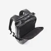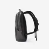 デザイン性と機能性重視のビジネスリュック 収納が2層式に分かれるバックパック。ポリウレタン素材で天候の悪い日でも安心して持ち歩けます。メイン収納はパソコンやiPadなどのタブレットも収納でき、大容量タイプのリュック。13インチのノートパソコンが楽々収納可能。前面収納にはスマホや小物収納に便利な、小物ポケットを完備。定期入れなどの小物の収納に大変便利です。メイン収納のPCホルダーは背面収納からも取り出せる。背負ったまま取り出せるのが魅力。サイドには500mlペットボトルや水筒、折り畳み傘などを収納できるポケットを2つ完備。背面には、厚めのメッシュクッションを使用し、ムレにくく背中にしっかりフィット。チェストベルトつきで、リュックが体にフィットし長時間使用しても疲れにくい仕様。