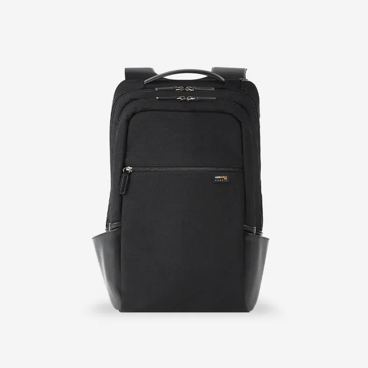 デザイン性と機能性重視のビジネスリュック 収納が2層式に分かれるバックパック。撥水性に優れているナイロン素材で天候の悪い日でも安心して持ち歩けます。メイン収納はパソコンやiPadなどのタブレットも収納でき、大容量タイプのリュック。13インチのノートパソコンが楽々収納可能。前面収納にはスマホや小物収納に便利な、小物ポケットを完備。定期入れなどの小物の収納に大変便利です。メイン収納のPCホルダーは背面収納からも取り出せる。背負ったまま取り出せるのが魅力。サイドには500mlペットボトルや水筒、折り畳み傘などを収納できるポケットを2つ完備。背面には、厚めのメッシュクッションを使用し、ムレにくく背中にしっかりフィット。チェストベルトつきで、リュックが体にフィットし長時間使用しても疲れにくい仕様。