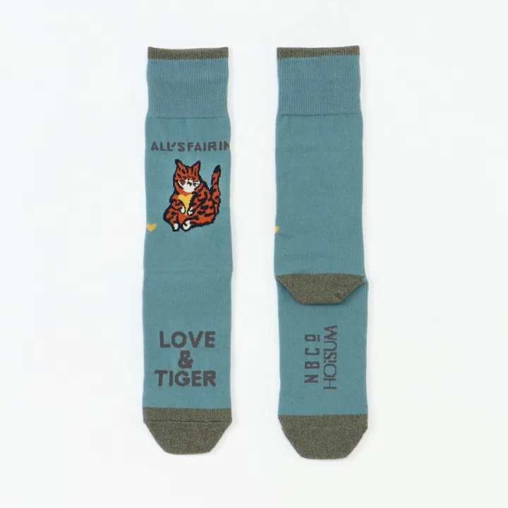奈良醸造を代表する定番ビール「FUNCTION」でお馴染みのFUNCTIONネコが、今回のコラボレーションのために特別なトラ柄で登場。 「All's fair in Love & Tiger」(ラブとタイガーのためだったら、何したって構わない!)というメッセージと共に、愛らしい?を抱えた虎ネコがデザインされています。 デザインの細部までこだわり抜かれており、足の甲には「LOVE&TIGER」の文字が大きく編まれ、靴を脱いだ時のインパクトも抜群。さらに、くるぶし部分には小さな?モチーフが隠れているなど、遊び心のある仕上がりになってます。 カラーバリエーションは2色展開: ポップで華やかなレッド×クリーム シックで落ち着いたブルー×グレー それぞれに異なる表情を持つ2つのカラーは、シーンや気分に合わせて選べるのも魅力。大切な人へのギフトとしても最適な一足です。 「ビールを選ぶ楽しみを」をモットーに、2018年の創業以来150種類以上のビールを造ってきた奈良醸造と、職人の技術とヴィンテージ機械が紡ぎ出す温もりあるものづくりを追求するHOiSUM。職人たちの情熱と、つかう人への愛、そしてつながりを大切にする二つのブランドだからこそ実現できた、特別なコラボレーションアイテムをぜひお見逃しなく。