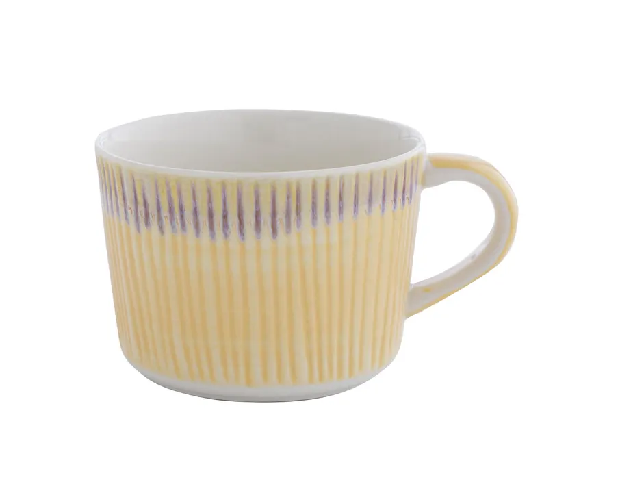 安定感のある広口マグは、スープやサラダ、デザートの器としても活躍します。 貝殻の表面のようなストライプが新鮮で、縁にかけた釉薬が個体ごとに表情豊かなやさしい色合いの3色展開です。 1つ1,200円の上代は最近ではかなり値ごろ感のある方ではないでしょうか? コースターや食品などちょい足ししても2,000円から2,500円くらいである程度ボリュームのあるギフト提案をしていただけます。 またデザイン的にもくせがなく、幅広いお客様に喜んでいただけるようなテイストです。 是非ホリデーシーズンのセットアップギフト提案にご活用ください。 ギフトBOX入り