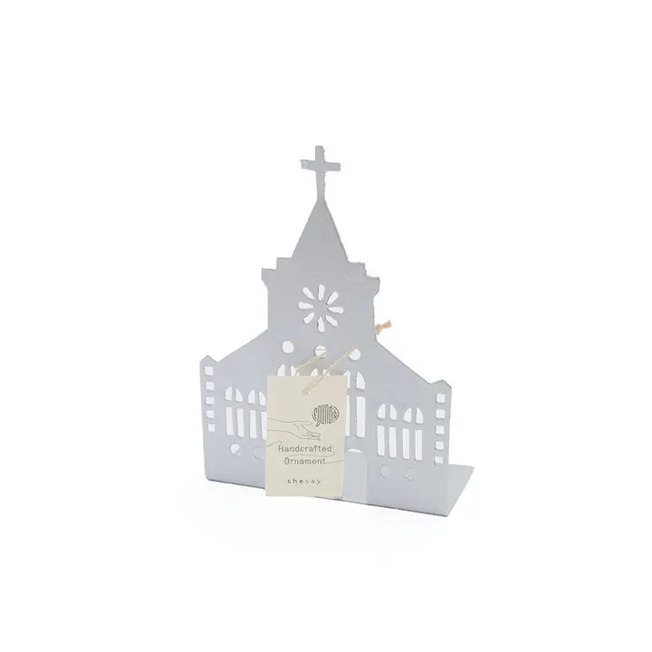ブリキ素材でできた 教会のシルエットオブジェ SL(シルバー)