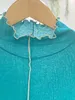 配色メロー接触冷感タートルネック グリーン×ベージュ