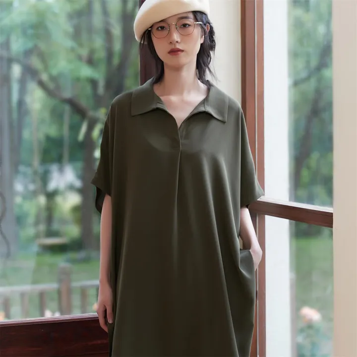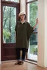 KNST352-ルーズフィットスキッパーカラーチュニックトップ OLIVE/FREE
