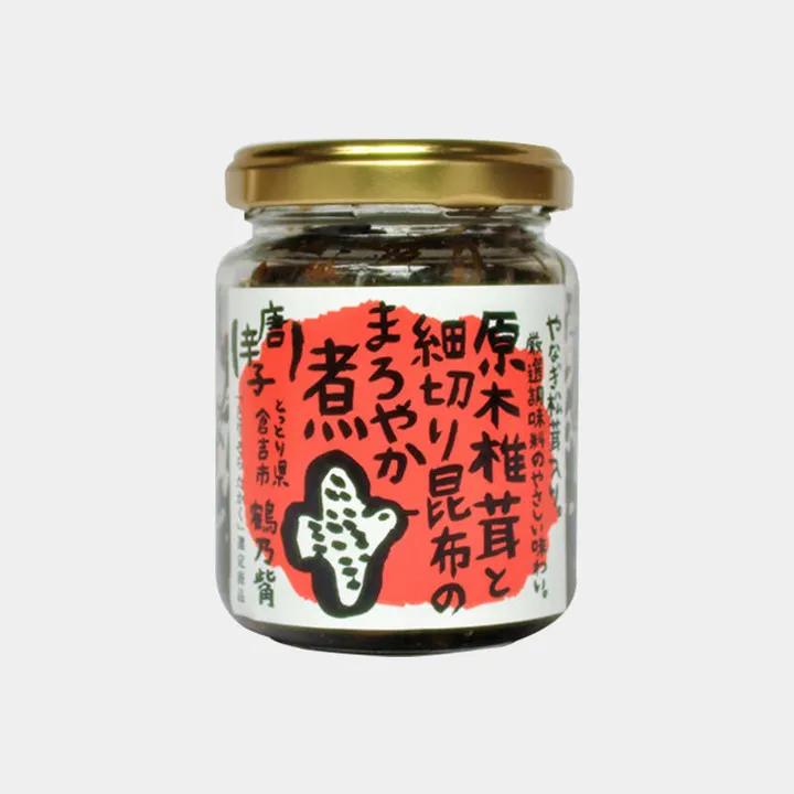 鳥取県産原木椎茸と、鳥取・岡山県の杉材を培地に栽培する無胞子品種のやなぎまつたけを、北海道産昆布と、吟味した本物の調味料でじっくりと煮含めた佃煮です。 やなぎまつたけの心地よい食感と、椎茸の風味、昆布の旨味が調和した一品で、ピリッとした唐辛子の味わいが切れのよい味わいに仕上げています。