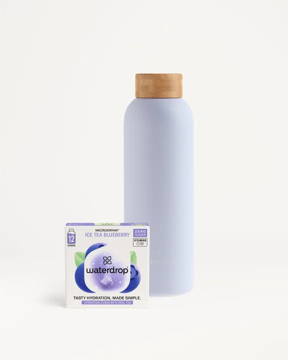 12個入り・天然の茶葉、ビタミン、砂糖不使用・ 二重構造ステンレス製ボトル、真空断熱 天然エキス 栄養価の高いビタミン 砂糖不使用 ヴィーガン ローカロリー 真空断熱スチールボトル 商品説明 ブルーベリーとまろやかなホワイトティーのすっきりとした味わいを楽しんで。二重構造のステンレス製で、飲み物を最大24時間保冷、または12時間保温します。600mlからお好みのデザインをお選びください。 サステナブルな飲み物の選択 waterdropregなら最小限のパッケージで、500mlペットボトル飲料と比べて プラスチックを最大98%削減。 waterdropregの使い方 水をもっと飲むためのシンプルな3つのステップ: WATER: 400-600mlの冷水 DROP: キューブを溶かす ENJOY: 爽やかでフルーティーな水を楽しむ 最高の果実エキスと本物の茶葉 Waterdropreg Microdrink ICE TEA BLUEBERRY ハイドレーションドロップ 12個 ・ホワイトティー - ブルーベリー ・天然果物・植物エキス ・栄養価の高いビタミンC/B3 ・ローカロリー ・砂糖不使用 ・人工保存料不使用 ・グルテンフリー ・ヴィーガン ・ 低カフェイン含有量(2.5-5mg/100ml) ・直射日光を避け、乾燥した涼しい場所で保存してください。 原材料および栄養成分情報 ブルーベリーエキスとホワイトティーエキスに甘味料とビタミンを加えた、爽やかなドリンクを作るための発泡性キューブ。 平均栄養価/500 ml 当たり エネルギー 4.3 kcal タンパク質 0 g 総脂質 0 g 炭水化物 0.4 g 食塩相当量 0.2 g ビタミンC 18.0 mg ナイアシン 3.2 mg 原材料:白茶エキス、ブルーベリーエキス/pH 調整剤、香料、炭酸 Ca、甘味料(スクラロース)、ビタミンC、ナイアシン 最高の原材料を詰め込んだキューブ 最高品質の果物や植物のエキスと本物のお茶で作られたマイクロドリンク ICE TEA BLUEBERRYで、いつもの水をフルーティーで爽やかなドリンクに変身! ブルーベリー マイルドでフルーティーな甘い香り。 ホワイトティー まろやかで、ほのかな甘みのあるフローラルな風味。 ビタミンC 免疫機能をサポート ナイアシン エネルギー代謝の維持を促進する効果があります。 爽やか&刺激的! 実用的なデザインで持ち運びも簡単!家族や友達とシェアするのにも最適です。自分用にも、みんなで一緒に楽しむ場面にも幅広くご活用いただけます!