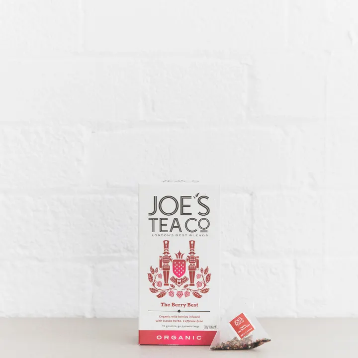 3種のベリーと隠し味のミントが香るフルティーで爽やかなオーガニックティー。 冬場はホットでゆっくりと。夏場はアイスでスッキリと。水出しやアレンジティー、炭酸と割ってティーソーダにするのもおススメ。 ●カフェインフリー ●オーガニック ●プラスチックフリー JOE'S TEAは2012年に英国で誕生したオーガニックティーブランド。「誰でも気軽に毎日ハイクオリティのお茶を楽しむ」をコンセプトに全てスリランカでお作りしているお茶です。 オーナー自身が前職の大手オーガニックティーメーカーでティーバイヤーとして勤めていた際に思いついた「手に取りやすい価格で品質の良い紅茶を作りたい!」というコンセプトの元、味とエシカルマインドを重要視した、プレミアムなオーガニックティーブランドが立ち上がりました。 特に若者の紅茶離れが叫ばれているイギリスで、ティー文化がコミュニティーを創るということをもう一度体現したく、素材や味にこだわりつつも、手に取りやすい価格で、モダンなデザインのモノづくりをしています。