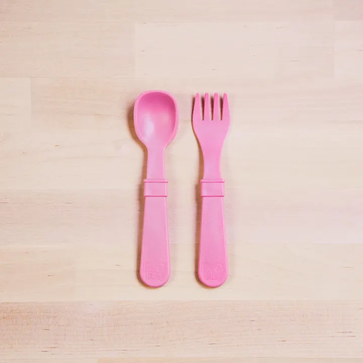 【カトラリーセット (スプーン&フォーク)】軽くて丈夫なテーブルウェア|再生プラ ブラッシュピンク