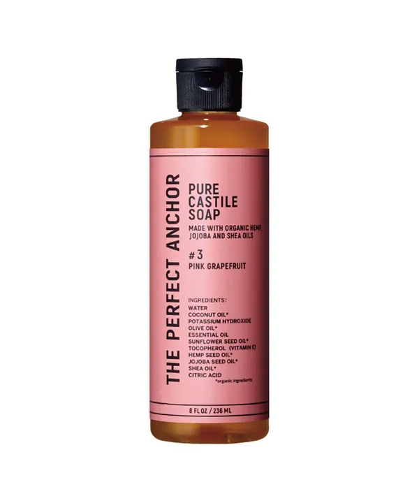 【ご注文の前にご確認ください】 ☑「ザ・パーフェクトアンカー236ml」は24本単位でのみご注文いただけます。  (例:24本、48本、72本 など) ☑「ザ・パーフェクトアンカー236ml」は同じ香りで24本、又は全8種類の香りからアソートでもご注文いただけます。  (例:ブラックスプルースブレンドx12本、レモングラス&オレンジx10本、ラベンダーx2本 など) ☑アソートでご注文の際は、各香りの合計本数が24本単位になっているかご確認ください。 ☑1本、2本、、、25本、26本、、、などの本数では承ることができません。  その際はご注文をキャンセルさせていただきますのでご了承ください。 ---------------------------------------------------------------------------------------- 【商品説明】 顔も体も洗え、メイクも落とすオーガニックソープ。 100%天然・無添加で認定オーガニック。 日本人の肌に合うようにアレンジ済の、米国製カスチールソープです。 毛穴の黒ズミやメイクまで落とせるのにつっぱらず、うるおい美肌成分(ヘンプ油、ホホバ油、シア脂油)が顔も体も、透明感のあるスベスベ美肌へと導きます。 カスチールソープとは、中世ヨーロッパのカステリヤ王国で作られていた、植物オイルを主体とした石鹸。王侯貴族が愛用していたことで知られています。 ザ・パーフェクトアンカーに配合されているヤシ油、オリーブ果実油、ヒマワリ種子油、ヘンプ油、ホホバ油、シア脂油は、有機栽培による原料から抽出された100%オーガニックのオイルです。 合成の界面活性剤、保存料、着色料など合成添加物は一切不使用。 生分解されるので地球に優しく、動物実験も行っていません。 洗顔、クレンジング、ボディ洗浄…1 本ですべてにさっと使え、すっきりと洗い上げながらも、しっとり美肌へと導く石けん。香料のかわりに贅沢に配合されたアロマ精油が、やさしく包み込んでくれます。 香りは、合成香料ではなくエッセンシャルオイルだけを使用していますので、毎日の洗顔や入浴の時間が、特別なアロマセラピータイムにもなります。 フレグランスのタイプは全部で9種類(アンセンティッド香りなし)。 お好みの香りをお楽しみください。 【用法】 濡らした手やスポンジ、ネットに適量とり、泡立てて顔や体を洗ってください。