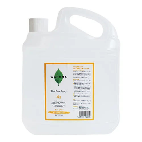 WAFONAオーラルケアスプレーはペットの口内の健康維持をサポートするスプレーです。 天然植物エキス108 種類をベースに、ニーム・クロロフィル等を配合し、愛犬のクリアな息と口内の健康維持をサポートします。 口内に直接スプレーしたり、コットンや歯ブラシに含ませて、歯磨きやお口のマッサージにお使いください。 詰替え用は、お使いのスプレーボトルがなくなりましたら、中身を入れ替えてお使いください。 〈成分〉 天然植物エキス108種・落葉ブナ葉エキス・ニームエキス・クロロフィル・デキストリン・ポリフェノール・カテキン・アミノ酸・各種ビタミン・各種植物吸収ミネラル 〈製品特徴〉 飲用水適合検査に適合しています。(第53-18-04433号) ニームエキス、クロロフィルがお口の環境を整え、 植物(フィトンチッド)の力で愛犬のお口の健康維持をサポートします。 化学合成物質は一切使用していません。 〈使用方法〉 お口の中に直接スプレーしたり、 歯ブラシにスプレーして歯を磨いてください。また、コットンやティッシュ、キッチンペーパー等にスプレーを含ませ、歯茎のマッサージにも。 〈使用上の注意〉 ペットの体質に合わない場合は使用を中止してください。 開封後はできるだけ早くお使いください。 直射日光に当たらない涼しい場所で保管してください。 ※お願い※ 当店では、新規のお取引におきまして、現在ECモールでの販売の方はお断りをさせていただいております。 ご理解、ご了承の上、ご発注お願い申し上げます。