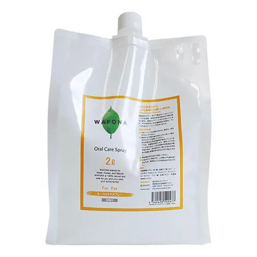 WAFONAオーラルケアスプレーはペットの口内の健康維持をサポートするスプレーです。 天然植物エキス108 種類をベースに、ニーム・クロロフィル等を配合し、愛犬のクリアな息と口内の健康維持をサポートします。 口内に直接スプレーしたり、コットンや歯ブラシに含ませて、歯磨きやお口のマッサージにお使いください。 詰替え用は、お使いのスプレーボトルがなくなりましたら、中身を入れ替えてお使いください。 〈成分〉 天然植物エキス108種・落葉ブナ葉エキス・ニームエキス・クロロフィル・デキストリン・ポリフェノール・カテキン・アミノ酸・各種ビタミン・各種植物吸収ミネラル 〈製品特徴〉 飲用水適合検査に適合しています。(第53-18-04433号) ニームエキス、クロロフィルがお口の環境を整え、 植物(フィトンチッド)の力で愛犬のお口の健康維持をサポートします。 化学合成物質は一切使用していません。 〈使用方法〉 お口の中に直接スプレーしたり、 歯ブラシにスプレーして歯を磨いてください。また、コットンやティッシュ、キッチンペーパー等にスプレーを含ませ、歯茎のマッサージにも。 〈使用上の注意〉 ペットの体質に合わない場合は使用を中止してください。 開封後はできるだけ早くお使いください。 直射日光に当たらない涼しい場所で保管してください。 ※お願い※ 当店では、新規のお取引におきまして、現在ECモールでの販売の方はお断りをさせていただいております。 ご理解、ご了承の上、ご発注お願い申し上げます。