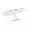 再生ガラスを利用して作られた環境にもやさしいケーキスタンド。 無色透明のシンプルな佇まいは、ケーキの美しさを引き立てる静かな存在感。 天板はフチのないフラットな形状でケーキを乗せやすく、ナイフも入れやすい仕様です。 脚部分はすこしぽってりとしたフォルムに仕上げ、どこか温かみのある雰囲気に。 使わないときもその佇まいがインテリアのアクセントになります。 アクセサリートレーやディスプレイスタンドとしてのご使用もおすすめ。 お菓子やお料理だけでなく、お気に入りの雑貨やジュエリーを美しく引き立ててくれます。