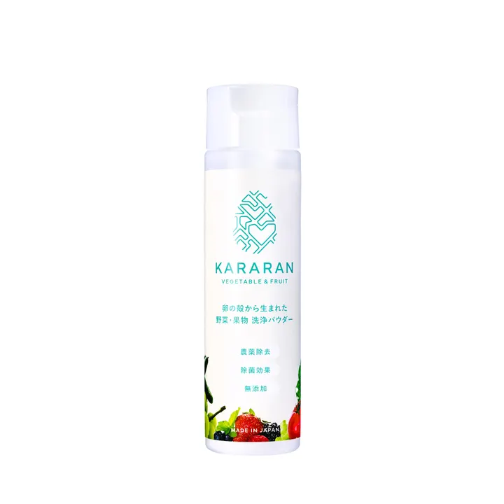 卵の殻から生まれた野菜・果物の洗浄剤です。 日本は卵消費国世界第2位の国で、国内で年間約27万トンtの卵の殻が排出されています。そんな卵の殻をアップサイクルすることで、KARARANが誕生しました。 ☆画像や情報の提供も喜んでさせて頂きます。ご不明点などがございましたらお気軽にお問い合わせ下さい☆ 【特徴】 ボトル1本に約60個分の卵の殻を使用した、天然素材の洗浄剤です。 【効果】 ・水道水では落とせない農薬の除去が可能です。 ・99.99%除菌が可能です。(全ての菌に効果がある訳ではありません。) 【KARARANが選ばれる6つの理由】 ・卵の殻という誰もが知っている成分で安心できること ・汚れが目に見える程の洗浄効果がある点 ・浸け置き時間が「3分」と短い点 ・ボトルを押すとパウダーが出るので、作業が楽な点 ・安全性・効果についてのエビデンスが充実している点 ・少し高級感のあるラベルデザイン 【こんな方にオススメ】 ・小さなお子様がいるママさん ・野菜や果物に付着した残留農薬や防腐剤などが気になる方 ・妊娠されている方 ・食材をより安心して食べたい方 ・環境への配慮を考えたい方 【よくある質問】 ・アレルギーの表示はありますか? →ありません。(卵アレルギーの原因となる卵タンパク質を取り除いています。) ・匂いはありませんか? →ありません。 ・手で触っても大丈夫ですか? →粉末はパッチテスト、水溶液は刺激性試験を行なっており、共に『無刺激』の結果が出ています。アルカリ性の為、肌の油が取れ乾燥することで手荒れの原因となる事がありますので、触られた際は保湿クリームなどを塗って頂くことをオススメしています。 ・KARARANを使うと水面にギトギトしたものが見えるけどこれは何ですか? →野菜や果物に付着した農薬・化学肥料・防腐剤・ワックスから出る油性成分が水面に浮かんでいます。