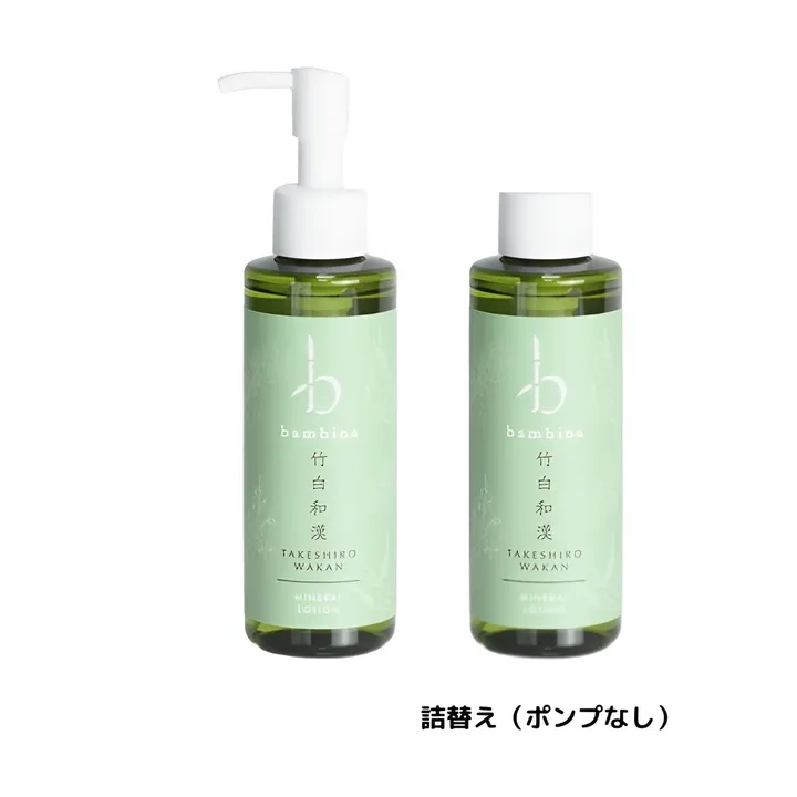 ●竹白和漢ローションの特徴 ・bambina竹白和漢化粧水は、竹炭ミネラルと5種類の和漢エキス(ヨモギ、ナツメ、オウゴン、桑の葉、甘草)を贅沢に配合した化粧水です。 ・紫外線でほてった肌をケア。 ・和漢エキスは、古来から愛されてきた天然成分で、肌をしっとりと潤わせ、透明感を与えます。 ・竹炭ミネラルには肌の代謝を活発にするカリウムが豊富に含まれているので、日焼けで疲れた肌を元気に労り、和漢エキスで明るい肌へ。 ・パラベンフリー、合成香料不使用。天然成分で作られたナチュラルスキンケアなので、敏感肌の方も安心してお使いいただけます。 この化粧水は、お客様からご意見を集めて長い年月をかけて研究・開発しました。私たちは、自然の恵みを惜しみなく使い、 厳選された原料を使って商品を製造しています。そのため、安心してご使用いただけます。無香料、無添加のナチュラルスキンケアです。 また、bambina竹白和漢化粧水は、環境にも配慮して作られています。ボトルはリサイクル可能な素材を使用し、廃棄物を最小限に抑えています。 私たちの取り組みをご支援いただければ幸いです。 ●各成分の役割 ・山口県産の孟宗竹を炭化し、ミネラル成分を抽出しスキンケアを開発。 ミネラル成分には肌が喜ぶ成分が豊富。→カリウム/新陳代謝を活発にし、老廃物を除去。シリカ(ケイ素)/保湿成分。硫黄/美白成分 ・和漢エキス→オウゴン/メラニンの産生スイッチOFF。桑の葉、甘草/日焼けによるシミ、そばかすを防ぐ。ナツメ、ヨモギ/ターンオーバーが乱れがちな季節肌を整える ●こんな方におすすめ ・肌のみずみずしさや透明感を取り戻したい方 ・シミやそばかすを予防したい方 ・潤いが気になりだした方 ・超敏感肌の方に特におすすめです。 ぜひ、美肌への第一歩としてご使用ください。 ●背景 bambinaのスキンケアは環境保全の為、廃棄される竹の有効利用として、地域活性化として研究開発されたスキンケアです。【肌を整えることが環境保全に繋がる】ここに着目し、私たちの取り組みが始まりました。私がキレイになって、気付けば環境保全に繋がる。無理しないサスティナブルな暮らしを提案しています。 ●バンビーナが選ばれる5つの理由 ①安心・安全 安心・安全な植物性活性ミネラルは老若男女、どのタイプの肌の方もお使い頂け、肌を正常な状態に整える。 ②今までにない植物性由来のミネラル 一般的なミネラルはほとんどの場合が鉱物由来。植物性由来の竹炭ミネラルは生体への親和性が高く、肌の活性機能を高めます。 ③豊富なミネラル 山口の竹には肌に良いとされるミネラルが豊富。 ④トラブル肌を整える 季節の変わり目などの肌あれ?にさよなら。365日安定した肌の状態を整える。 ⑤サスティナブル 竹害と言われる竹を有効利用。美しい里山を次世代に繋げるサスティナブルコスメ。使えば使いほど私も環境もキレイになる。