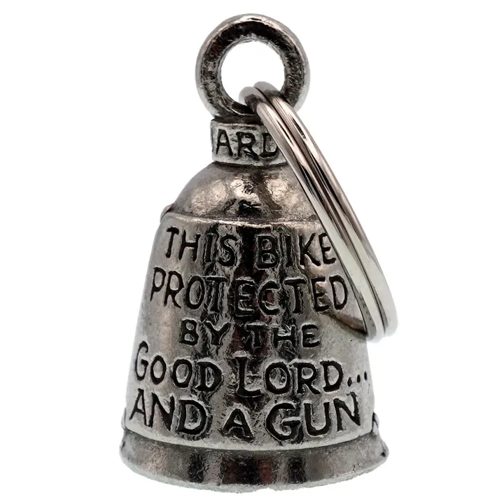 アメリカ製ガーディアンベル社製ガーディアンベルです。 MADE IN USA アメリカ製 交通安全 魔除け 御守り ガーディアンベル アメリカのライダーの間には、事故や、転倒の原因は「道路にひそむ悪魔」によるいたずらだという伝説があります。悪魔は走る者に悪戯やトラブルを運んできます。このベルは美しい音色で悪魔たちを追い払うと言われ愛されています。そんな悪魔のいたずらを防ぎ、御守りとなるのが、守護者のベルという意味を持つガーディアンベル。 日本でも鈴の音(ね)は神道では魔除けの音と言われています。ピューター製の鈴でいい音色でガーディアンベルはデザインも様々あります。 またガーディアンベルにまつわる伝説として、プレゼントとして送られたベルの効果は、自分で手に入れたものの2倍になると言われています。 それゆえに彼氏・彼女・友達・家族へのプレゼントとしての人気も非常に高まっています。 シルバーアクセサリーのようにおしゃれに装着できて素敵な音色を奏でるガーディアンベル。 バイカー以外にも自転車や旅・交通安全のお守りとしてお使いいただけます。 カバン・ランドセル・キーホルダー・ペットの首輪等に付けてお使いください!! ※タイラップ等でバイクのフレームにも簡単に取り付けできます。 アメリカンモデルだけではなく、旧車ファン、レプリカライダーまで、さらにバイクだけでなく、自転車や車にもピッタリな御守りとなっています。 アクセサリーとしても人気で、アイディア次第で車体だけでなく、キーホルダーや鞄など、どこにでも付けておしゃれに楽しめます。