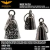 アメリカ製ガーディアンベル社製ガーディアンベルです。 MADE IN USA アメリカ製 交通安全 魔除け 御守り ガーディアンベル アメリカのライダーの間には、事故や、転倒の原因は「道路にひそむ悪魔」によるいたずらだという伝説があります。悪魔は走る者に悪戯やトラブルを運んできます。このベルは美しい音色で悪魔たちを追い払うと言われ愛されています。そんな悪魔のいたずらを防ぎ、御守りとなるのが、守護者のベルという意味を持つガーディアンベル。 日本でも鈴の音(ね)は神道では魔除けの音と言われています。ピューター製の鈴でいい音色でガーディアンベルはデザインも様々あります。 またガーディアンベルにまつわる伝説として、プレゼントとして送られたベルの効果は、自分で手に入れたものの2倍になると言われています。 それゆえに彼氏・彼女・友達・家族へのプレゼントとしての人気も非常に高まっています。 シルバーアクセサリーのようにおしゃれに装着できて素敵な音色を奏でるガーディアンベル。 バイカー以外にも自転車や旅・交通安全のお守りとしてお使いいただけます。 カバン・ランドセル・キーホルダー・ペットの首輪等に付けてお使いください!! ※タイラップ等でバイクのフレームにも簡単に取り付けできます。 アメリカンモデルだけではなく、旧車ファン、レプリカライダーまで、さらにバイクだけでなく、自転車や車にもピッタリな御守りとなっています。 アクセサリーとしても人気で、アイディア次第で車体だけでなく、キーホルダーや鞄など、どこにでも付けておしゃれに楽しめます。