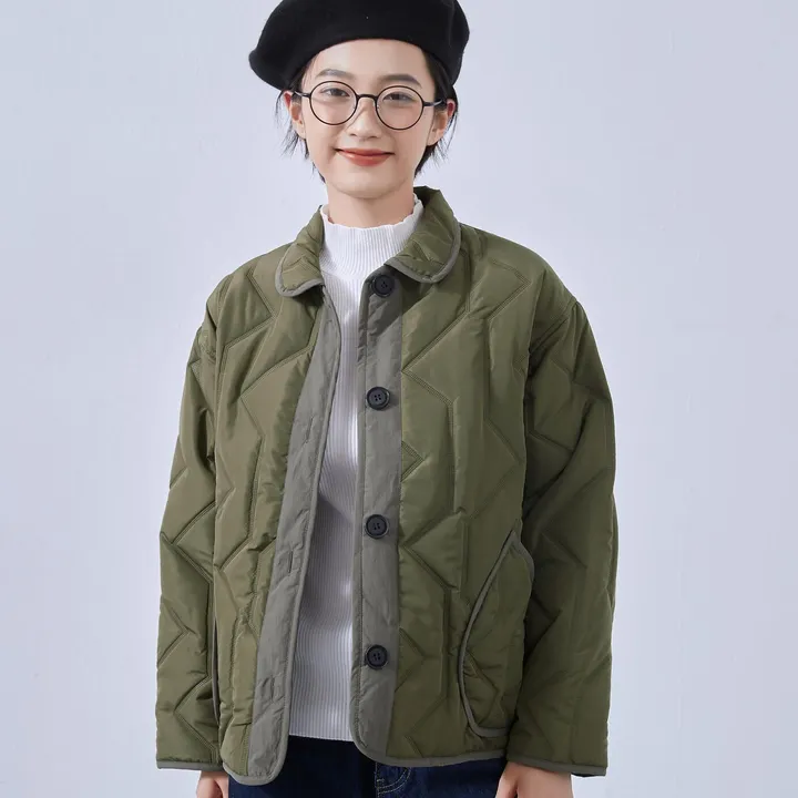 KNSJ372-超音波キルティング・ショート丈・ジャケット・アウター・コート OLIVE/FREE