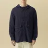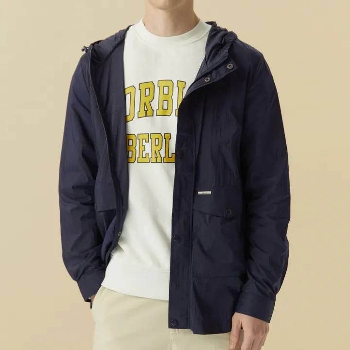 ・ストリング付きフードで実用性が高く ・ヒップを覆う丈感で動きやすく ・両側ポケットとメタルワッペンでポイントをプラス