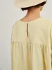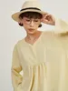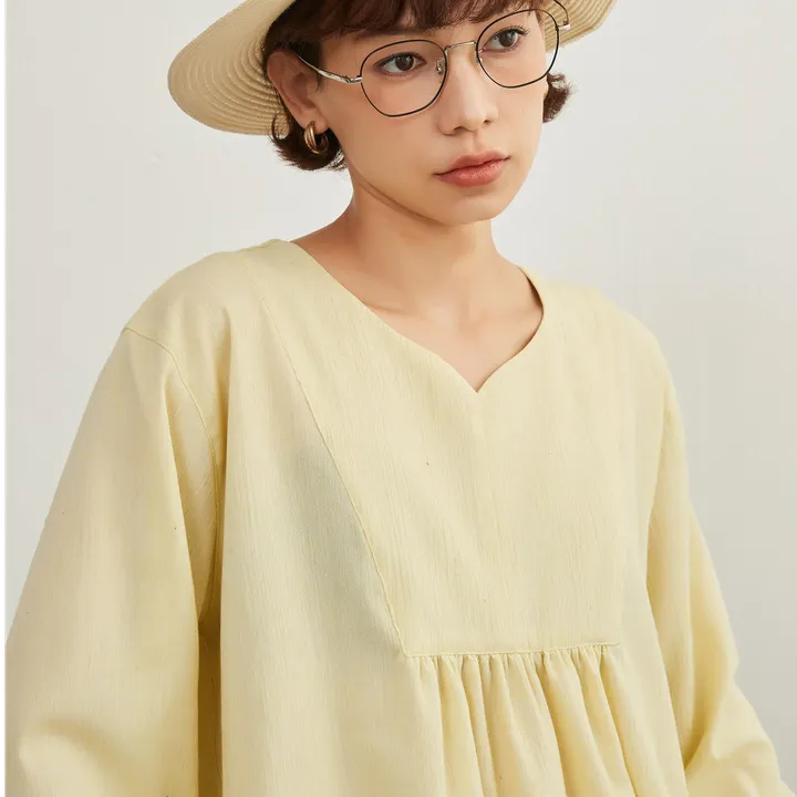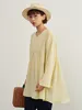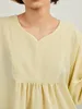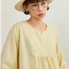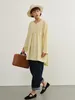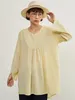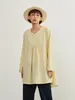 KNXT414-袖口スリット・長袖リネン混シャツ・ロングブラウス・体系カバーライトトップス FREE/YELLOW