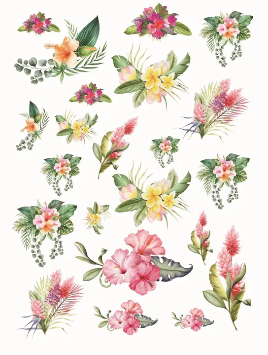 ポーセラーツ転写紙| ハワイアンブーケ(ガラス用)