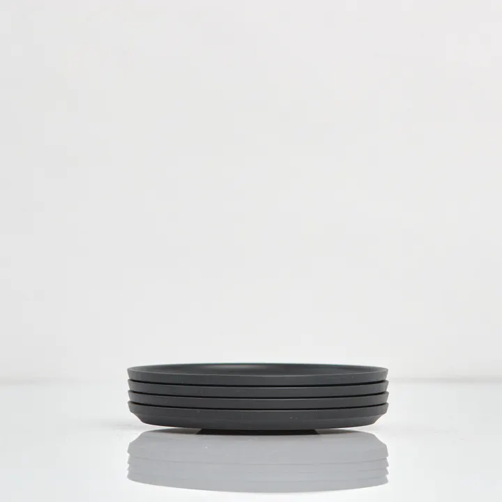 ソーサー 4枚セット ※ハスキーカップ専用のソーサーとなります。 マット調でシックな落ち着いたカラーのチャコールと、商品の表面全体ににコーヒーハスクを使用しているのを感じることができるナチュラルの2色展開。