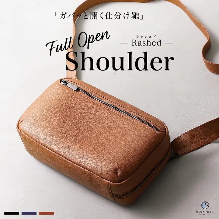 【 選び抜いた環境想いの本革素材 】 「ずっと長く愛用してほしい。」その想いから素材選びに徹底的にこだわりました。 素材には耐久性に優れた植物タンニン鞣しのシボ革を採用しました。すぐに傷が付いてしまう羊革や合革では使う度のお手入れが大変ですが、シボ革は傷が付きにくく、目立ちにくいので毎日ガシガシお使い頂くことができます。 忙しいあなたでも日々の大変なお手入れの必要がありません。 また、シボ革は耐久性に優れているのでずっと長くご愛用頂くことで、味が深まって行きあなただけのショルダーバッグに育てていくことができます。 【8つの仕分けで利便性抜群】 細かく仕分けができ、日常使いでストレスを感じにくい鞄を目指しました。すぐに取り出したいスマホやミニ財布は外側のファスナーポケットへ。 内側にはファスナーポケット、フリーポケットが合計6つあり大事なものはここへ。外観デザインは、シンプルデザインをさらに引き締めるため、ファスナーはマットブラックで統一。 【イチオシポイント♪】 「出かける時は意外と荷物が増えてしまう…結構物が入るショルダーバッグが欲しい!」「今のカバンはたくさん物が入るけど…ナイロン製でカジュアルすぎる…」「どんな服のコーディネートにも合う肩がけシンプルバッグを探している!」 このような悩みで普段使いのカバン・バックを探している方はいらっしゃいませんか? 長財布・スマホ・キーケース・タバコ・ペットボトル・ハンカチ・ティッシュ・折りたたみの傘など、休日に持って歩きたい物って結構たくさんありますよね?でもいざそれらを持ち運ぶとなると…カバンは必然的に大きくなりますし、重たくなって身体への負担も大きくなりますよね。それに休日に身に着けるバッグなら、どんな服にも合ったオールマイティーなショルダーバッグが良いとお思いではありませんか? そんなあなたに是非使ってもらいたいのが、このBLUE SINCEREのショルダーバッグ ラッシュド / SHB12 です。