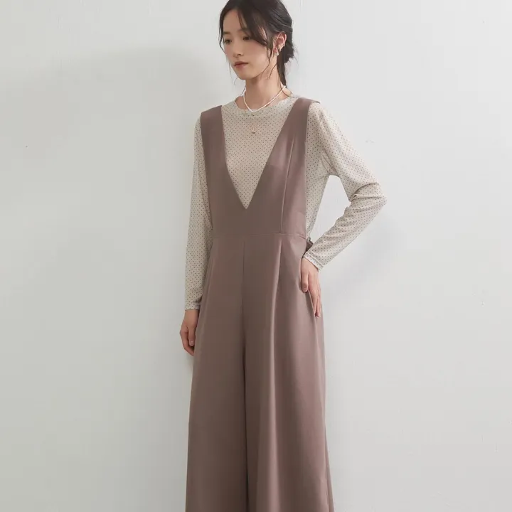 KNGP619・ワイドレッグリラックスジャンパーパンツ・つなぎ・サロペット MOCHA/L