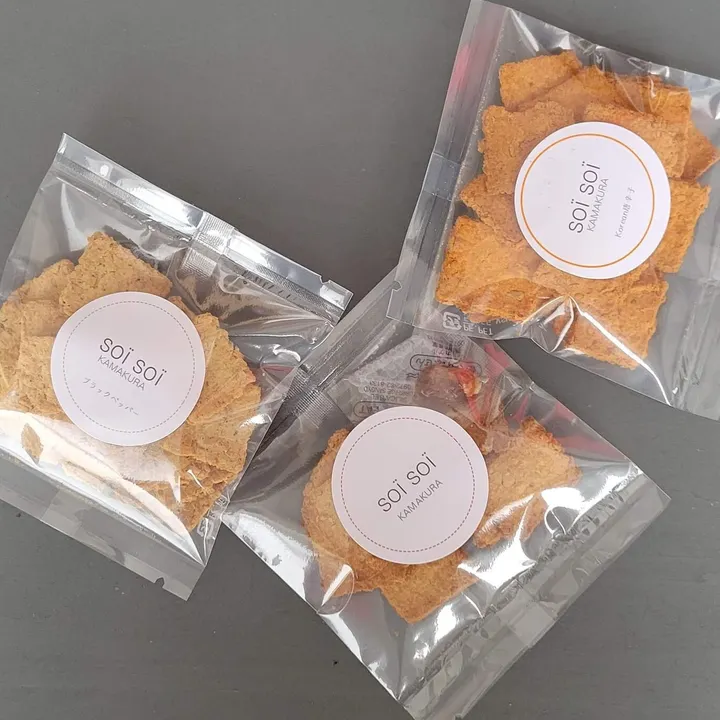 soï soï (ソイソイ)にご興味を持っていただき、ありがとうございます。 「ソイグラノーラ」は、国産生オカラとオートミールが出会った、ザクザク食感! 小麦粉不使用のグルテンフリーで、食べ始めたら止められないおいしさです。 サンプルにつき4個入り(通常商品は7個入り)となっておりますので、ご注意ください。 サンプルは2個までは送料が¥180(郵便)となります。3個以上は宅配便を利用致します。 その点、ご了承いただけると幸いです。