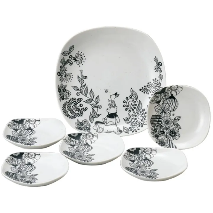 Disney パーティープレートセット くまのプーさん フラワー モノクロ