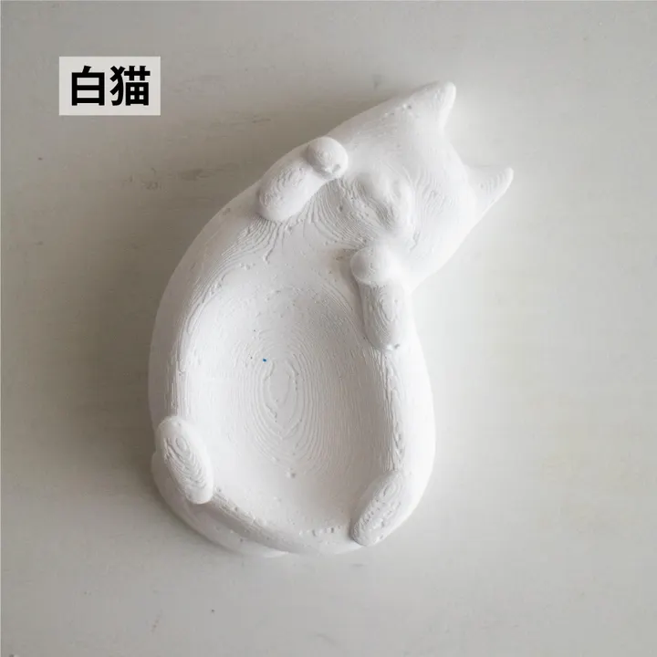 ごろ〜んにゃんこのアロマストーン|猫のお腹がトレイになるミニオブジェ 白猫