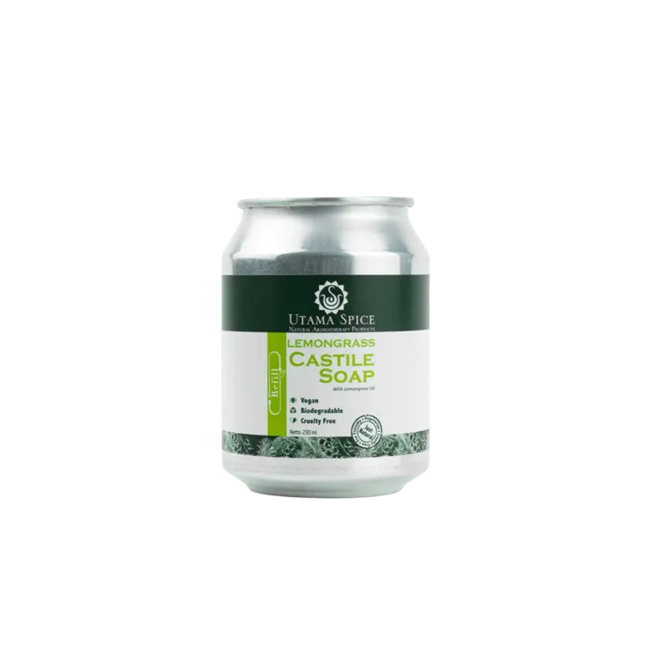 カスティールソープ レモングラス の詰め替え用です。 環境をに配慮して、、リサイクル効率が高いアルミ容器を使用しています。 アルミ容器なので所々へこみがございます。 ご了承願います。 容量:230ml