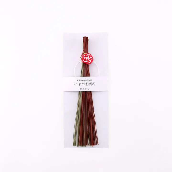 吊り下げてお正月飾りとして飾った後は、水引を外して花瓶に入れて飾ってください。い草が持っている消臭機能やリラックス効果などを年中お楽しみいただけます。お好みの長さにカットできますので、ご自宅の玄関やリビング、トイレなど様々なシーンでご使用いただけます。※無染色のものはディフューザーのリードにも使えます。※い草が状態を保っている限り半永久的に効果は持続します。●おススメの組み合わせ【マットな質感の磁器製のフラワーベース シリーズ各種】<a href="https://www.superdelivery.com/p/r/pd_p/10384256/">磁器製のフラワーベース パフィ</a><a href="https://www.superdelivery.com/p/r/pd_p/10384255/">磁器製のフラワーベース プランパー</a><a href="https://www.superdelivery.com/p/r/pd_p/10384258/">磁器製のフラワーベースチムニー</a><a href="https://www.superdelivery.com/p/r/pd_p/10384257/">磁器製のフラワーベース ロウタンド</a>リューズガラスのフラワーベースに入れても可愛いです。●い草のお飾りは<a href="https://www.superdelivery.com/p/do/dpsl/190793/?word=%E3%81%84%E8%8D%89%E3%81%AE%E3%81%8A%E9%A3%BE%E3%82%8A">コチラ</a>い草の学名 Juncus には「結ぶ」という意味があるそうです。結ぶという言葉には、繋げる・まとめる・創る・固める・締めるのように様々な意味があり、人との関係をむすぶ、契りを結ぶといったご縁や心をむすぶという意味でも使われます。い草はそんな縁起の良い意味を持った草です。また、い草には空気をきれいにする効果、消臭効果、調湿効果があり、香りにはリラクゼーション効果などがあります。*生産地:福岡県三潴郡【インテリア雑貨】【消臭】【リラックス】【イグサ】【い草】【ハレの日】【正月】【正月飾り】【水引】【贈答品/ギフト】【い草のお飾り】