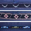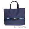スモッキング刺繍をあしらった上品なネイビーカラーのレッスンバッグです。 入園入学ギフトとしても大変喜ばれます。 B4スケッチブックやピアノの楽譜、ノートパソコンなどゆとりを持って収納できるちょうど良いサイズです。 毎日の通園通学用~お教室通いのバッグ、お受験本番、大人の方のレッスンバッグとして様々なシーンで安心してお使いいただけます。 本体生地は、上質の弱撥水加工ナイロン生地を使用していますので雨の日のご使用も安心。裏地もナイロンを使用しています。 スモッキング刺繍のデザインは全部で3種類展開しています。 ●ご購入されたお客様の声(一部抜粋) ・レッスンバッグの中で水筒のお茶が漏れていた際、バックからシミ出ることなく内側にお茶が溜まっていたことにビックリしました。  ナイロン素材しっかりしているし、防水効果もありとても良いです。 ・仕事でノートパソコンを持ちあるく時にサイズ、重さ、丈夫さぴったりで自分の分として今回購入しました。中のポケットにマウスとモバイルバッテリーがすっぽりはいり、防水性もあり、安心です。 ・しっかりとしたナイロン素材のバッグです。シューズケースとセットで受験用に購入しました。  刺繍がとでも綺麗で同じような色のレッスンバッグと比較しても高級感があります。息子がとても気に入ってくれたので購入して良かったです。 ・スモッキング刺繍がとても素敵でした。  車のデザインもカッコいいデザインで子供も気に入っています。 全体の生地感もしっかりしている印象です。