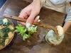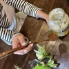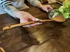 無垢チーク材の盛り付けや取り分けに便利な大き目スプーンが入荷しました☆ 安心の天然素材で作られた丈夫な食器になります! 大皿料理や瓶詰、缶詰などの取り分けに便利な大き目なスプーンになります☆ チーク材は古来より、高級家具や、ヨットなどの船舶の甲板材などで重宝された、水にも強く、耐久性の高い素材になります。 天然の木材の温かみたっぷりで、使い心地や手触り、使い込んだ手への馴染みも良く、末永くご愛用して頂けます。 ウレタンやラッカー塗装はしておらず、オリーブオイル仕上げになっておりますので、体にも優しく、自然の艶で高級感があります。 量産品とは違う、手にして頂いた時の手触りの違いにご満足いただけると思います! ご家庭のキッチンではもちろん、キャンプやアウトドアにも最適な一品です☆ チーク材の独特な香りがする場合がございますが、洗浄して頂き、自然乾燥していただければ徐々に無くなります。 自然木の木目の美しさを実感して頂けるお品です! サイズ:幅5cm 長さ28cm 材質:無垢チーク材・オイル仕上げ 最善の注意を払っておりますが、ナチュラル素材でハンドメイドの為、色合い、大きさ等、多少異なる場合がございますが、ご了承くださいませ。
