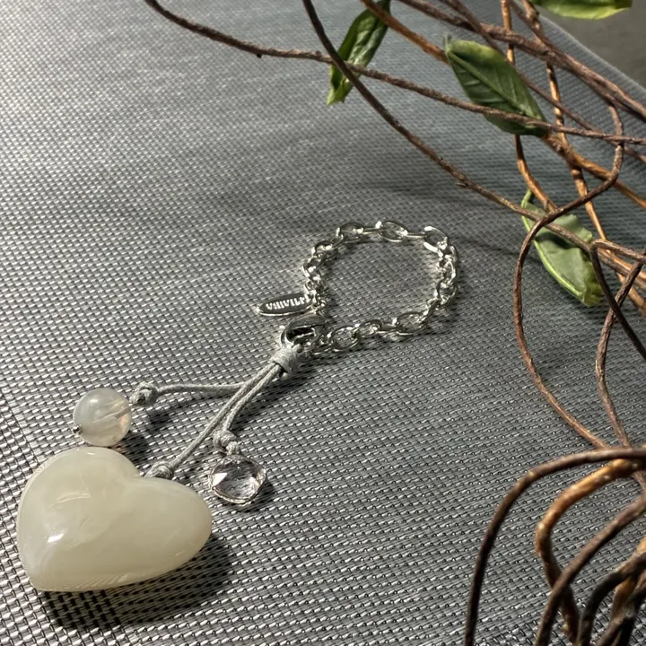 ミニマル ハートガラス チェーンバッグチャーム グレー