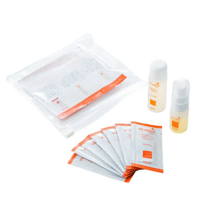 エステティックサロン・スパ・美容院・ネイルサロン・リラクゼーションサロン・クリニック、美容サロン、雑貨店等のお客様向けにご紹介しております。 2回目以降のお客様はこちらから <VCシリーズとは?> 10代のころのターンオーバー周期は20日程度と言われていますが、30代~40代に近づくにつれて【約2~2.5倍】になっていきます。 そこでポイントになるのが「傷つきにくい肌づくり」。 VCシリーズはビタミンCの効果に着目し、ビタミンA、C、Eをバランスよく配合。 肌内部の活性酸素の発生やメラニンの生成にアプローチして、外部刺激を受けても肌トラブルを引き起こしにくい肌を目指した商品です。 ◆こんな方におすすめです ・ニキビや吹き出物に繰り返し悩んでいる方 ・ビタミンC誘導体配合コスメを使ってみたいと考えている方 ・肌の調子がなかなか安定しない方 ◆ こんな時におすすめです ・薬局、ドラッグストアのレジ横販売 ・季節もの商品として「ニキビケア対策」商品をお探しの方 ・理容室、フェイシャルエステ等フェイシャルを行う店舗での施術用化粧品、小売品としてお探しの方 ◆お客様の肌質にあわせてご提案いただけます パターン1 乾燥肌~肌が安定している方 →水分補給+保湿を優先 ・VCローション ・薬用VCエッセンス ・VCビタール パターン2 脂性肌の方(思春期ニキビにお悩みの方に)→ 余分の油分の除去と保湿 ・薬用VC泡フォーマー ・VCローション ・薬用VCエッセンス パターン3 混合肌の方(大人ニキビにお悩みの方に)→その日の肌のコンディションに合わせて調整可【定番利用】 ・薬用VC泡フォーマー ・VCローション ・薬用VCエッセンス ・VCビタール <概要> SiBODY VCシリーズをライン使いでお試しになってみたい方に特におすすめ。 特におすすめなのが、「薬用VC泡フォーマーと7日間VCシリーズを試せる「薬用VC泡フォーマー付きVCスターターセット」です。 香りや肌に合うかどうかチェックしてから導入検討したい場合にぴったりのサンプルセット。 海外のインバウンドの方にも刺さりやすい「国内生産」「医薬部外品」「ビタミンC誘導(APIS)」とキャッチ―な訴求ができるのでおすすめです。 夏のニキビが増える時期に特によく売れ、ポーチに入っているので小旅行のおともにもおすすめしています。 季節商品としてご検討もおすすめいたします。 <ご使用方法> STEP1 ニキビ予防におすすめの薬用VC泡フォーマーで泡パックをしながら摩擦レス洗顔 STEP2 供給型ビタミンC誘導体VC200(APIS)配合VCローションでしっかりと保湿 STEP3 ニキビ予防、メラニンの生成を防ぎしみ・そばかすを防ぐ薬用VCエッセンスでスペシャルケア SETP4 ノンコメドジェニックテスト済みVCビタールで気になるところは集中ケア 「お客様の施術に使いたい」「実際にためしてから店舗で紹介するか検討したい」というお声を受けて特別サンプルとしてご用意いたしました。 <特長> [POINT.1] 次世代のビタミンC誘導体「VC200(APIS)」配合!ビタミンケアの金字塔! ※VCローション・VCビタール 従来のビタミンC 誘導体と比較して24時間200倍ビタミンC供給するから、きゅっと肌を引き締しめ、もっちり肌に導きます! ===================== 「VC200」は「イソステアリルアスコルビルリン酸2Na」と呼ばれるビタミンC誘導体。 APISとも称される「イソステアリルアスコルビルリン酸2Na」は、同じく浸透性の高いビタミンC誘導体VC100(APPS(アプレシエ))の次を担うビタミンC誘導体として目されている成分です。APPSは二種類の酵素が必要なところ、APISはフォスファターゼの一種のみでビタミンC還元でき、高いビタミンC還元力と供給力をほこります。 ===================== <ここが違う!> ・肌の酵素と結合してビタミンC変換されるから、肌なじみよく刺激が小さいのが特徴的です。 ・光や熱に強いビタミンC誘導体だから、常温保存いただけます。 [POINT.2] 医薬部外品成分で肌のコンディションを整え、傷つきにくい肌へとサポート! ※薬用VC泡フォーマー、薬用VCエッセンス 不規則な仕事サイクルをしている看護師さんの生の声を受けて開発されたVCシリーズは、医薬部外品成分を配合。 有効成分としてイソプロピルメチルフェノール、グリチルリチン酸ジカリウムを配合し、殺菌、消炎をしてニキビ予防へと導きます。 また、薬用VCエッセンスにはL-アスコルビン酸 2-グルコシドも配合しており、ニキビの後や紫外線などメラニン生成しやすい肌へとアプローチ。 メラニンの生成を抑えて、しみ・そばかすを防ぎます。 [POINT.3]ビタミンCをサポートする成分「ビタミンA」・「ビタミンE」を配合。トリプルビタミンケア! お肌の三大ビタミン「ビタミンC(※ビタミンC誘導体として)」「ビタミンA]「ビタミンE」をトリプル配合。 互いの効果を高めあうビタミンをバランスよく配合しています。 ※稀にレチノール反応が起こるケースがありますので、目立たない部分でパッチテストをお願いします。 [POINT.4] 肌を整える和漢成分配合で、肌ダメージをやさしくいたわる! セイヨウオト