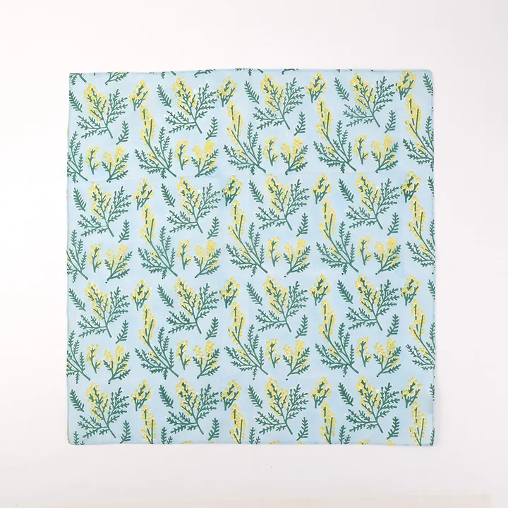 ミモザの日にプレゼントしたい ブロックプリントのハンカチ BL(ブルー)
